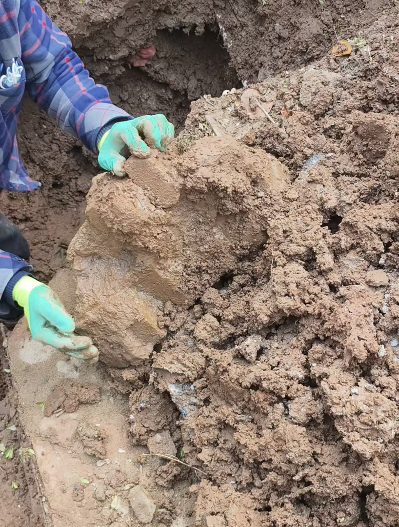 当天14时许,现场已经挖了七八十厘米深,维修人员依然没有找到漏点,只好继续向下深挖,但进展并不顺利,铁锹不时发出撞击的声音,这意味着碰到了坚硬的大石头,几次敲击都未能敲碎,维修人员只好先一点点挖掉四周的泥土,不断撬动石块,才能清除“拦路虎”。记者看到挖出的回填土里掺杂着形状大小不一的石块和废砖头,维修人员还不时从土里抽出几截工地用的绿色苫布。居民认为,这些回填土明显是建筑渣土。
