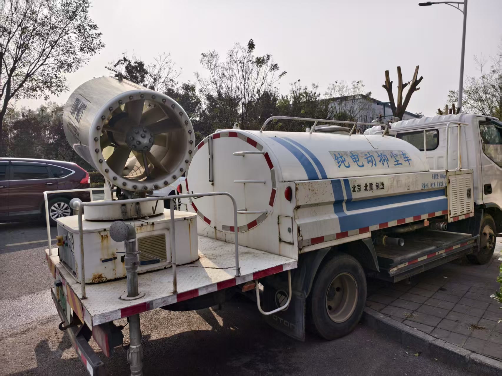 小区外停放着水车,但无法作为饮用水使用。10月25日18时20分许,管线终于抢修完毕,恢复供水。但停水的影响还不止于此,“每次停水后,自来水都会混杂大量杂质,就看开阀门时水压大小,先冲到谁家谁倒霉。”张先生说,许多居民家里安装了净水装置,但都难逃泥沙“冲击”,用不了多久就坏了。
